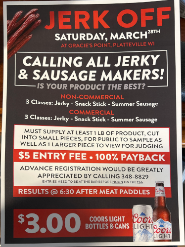 Gracie's Point 9396 State Road 80, Platteville, WI, United StatesCalling all jerky & sausage makers! Is your product the best? Enter our annual contest & find out. 3 classes...